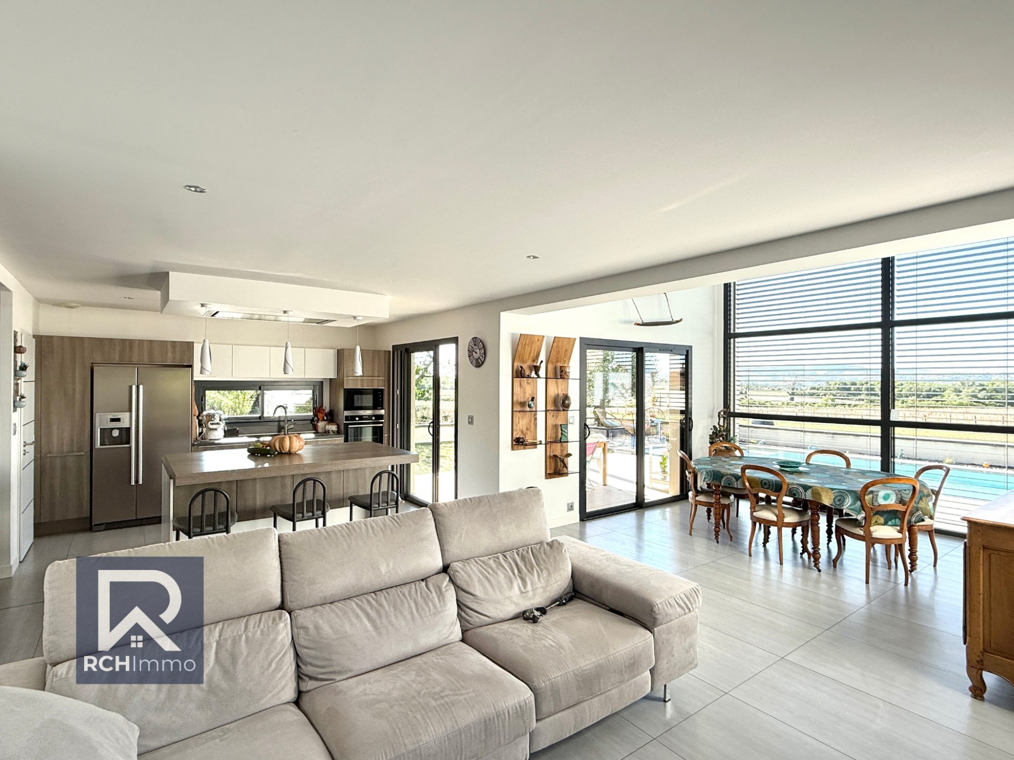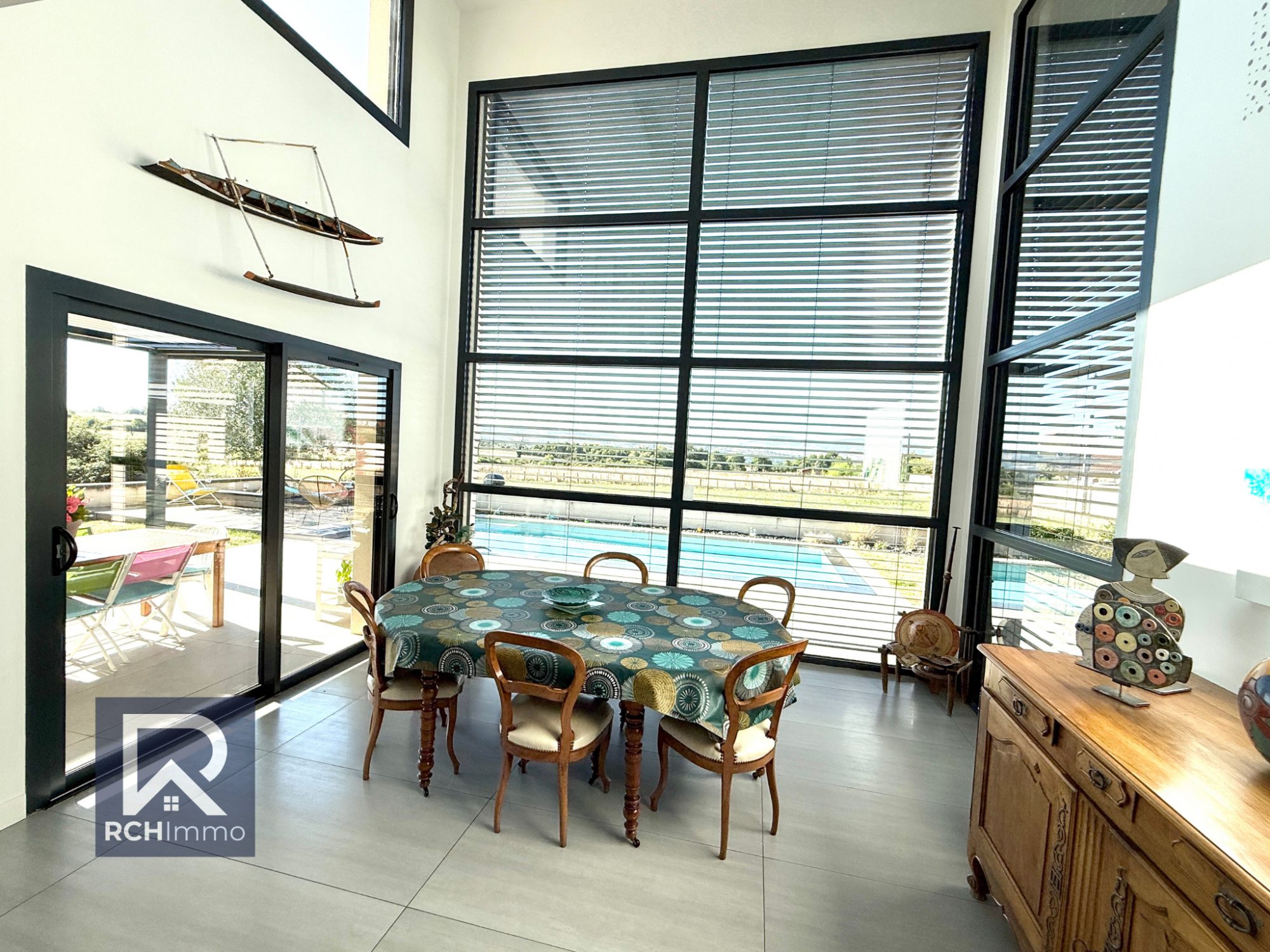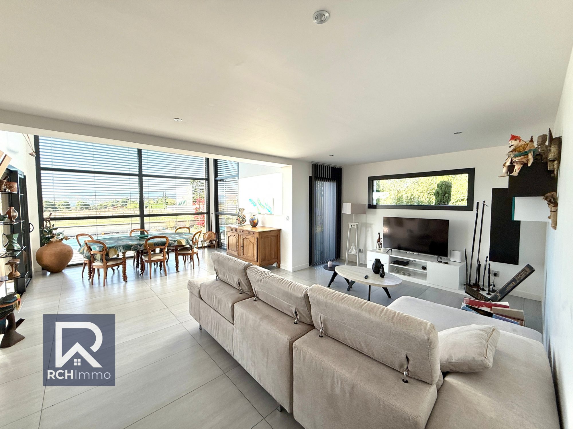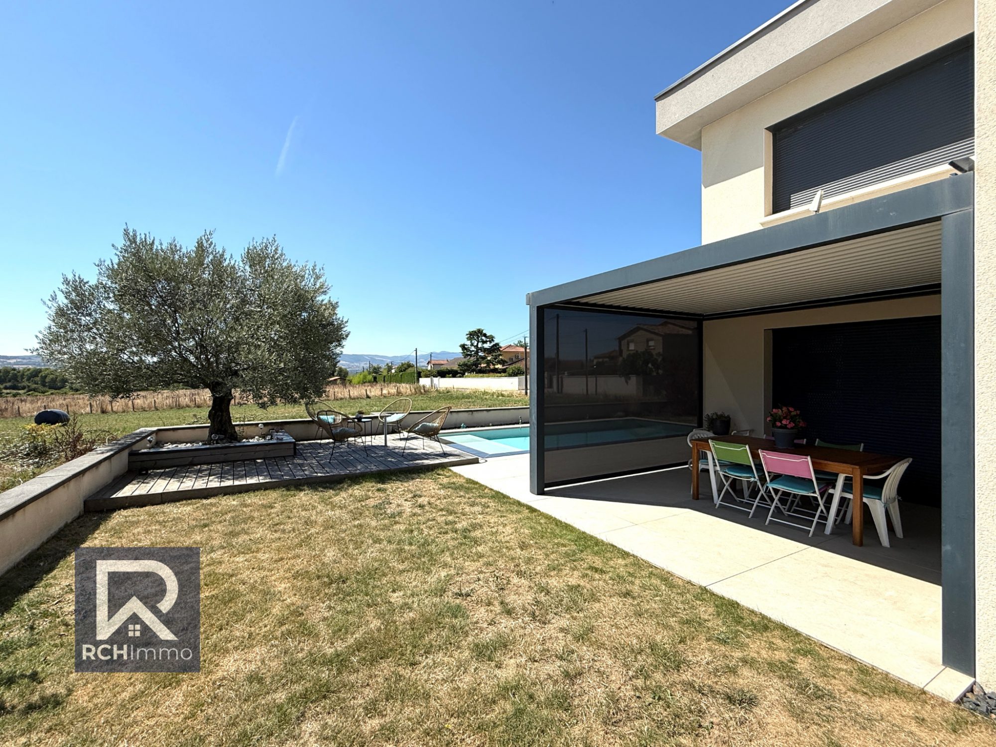 Prestations haut de gamme : - Pergola bioclimatique - 14 panneaux photovoltaïques (2024) - Chauffage au sol par pompe à chaleur (air/eau) - Isolation phonique & thermique de qualité - Plafond cathédrale + baies vitrées double hauteur - Huisseries aluminium + volets roulants électriques centralisés - Classe énergétique : B