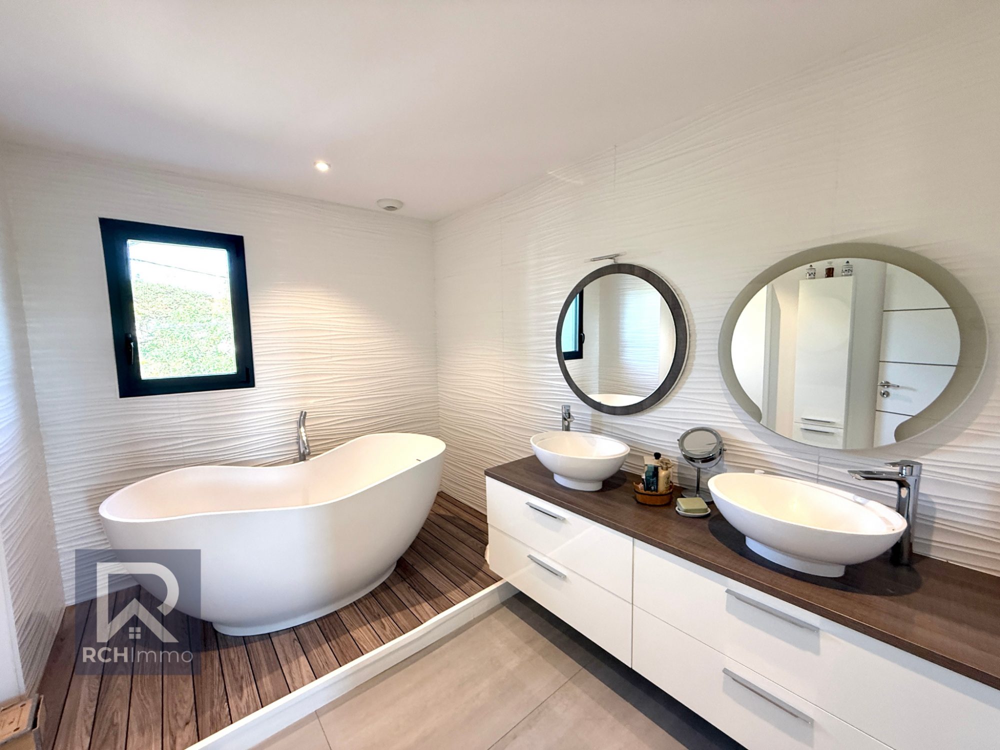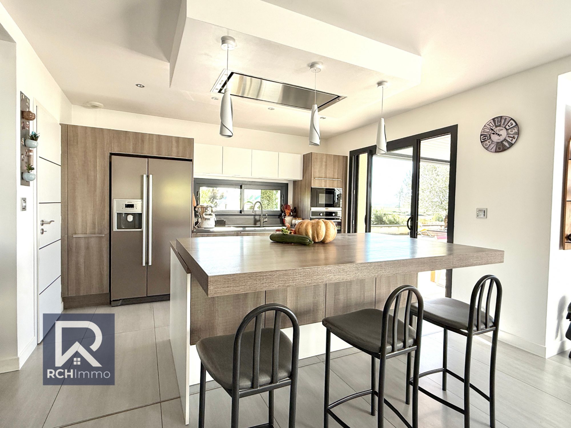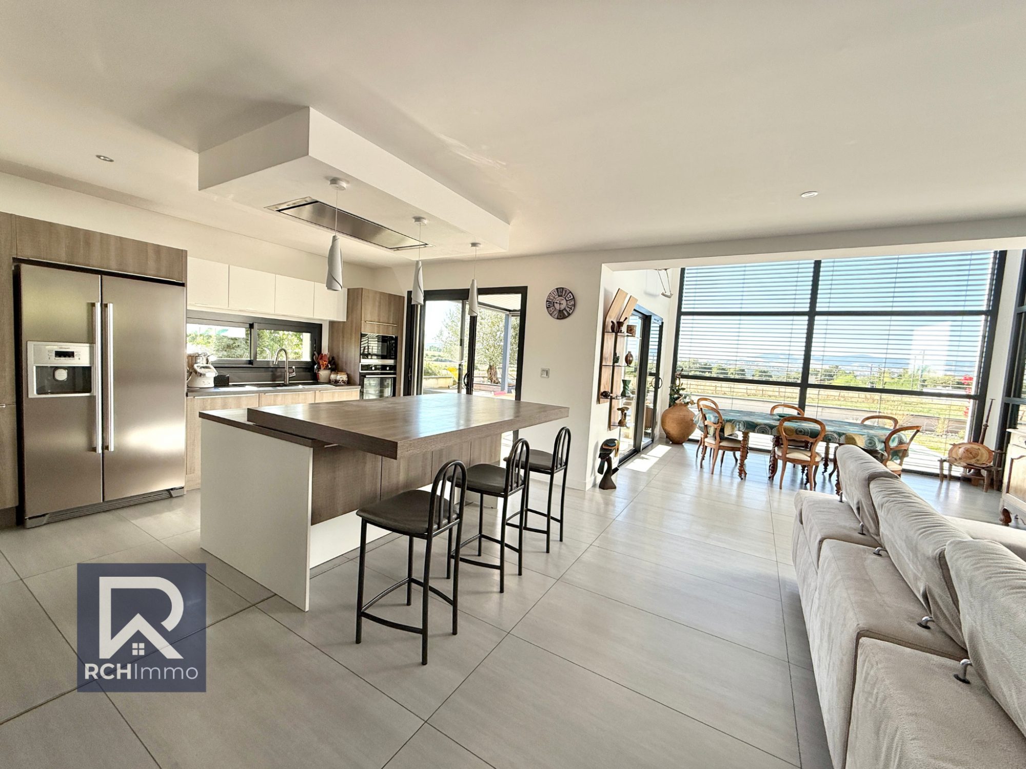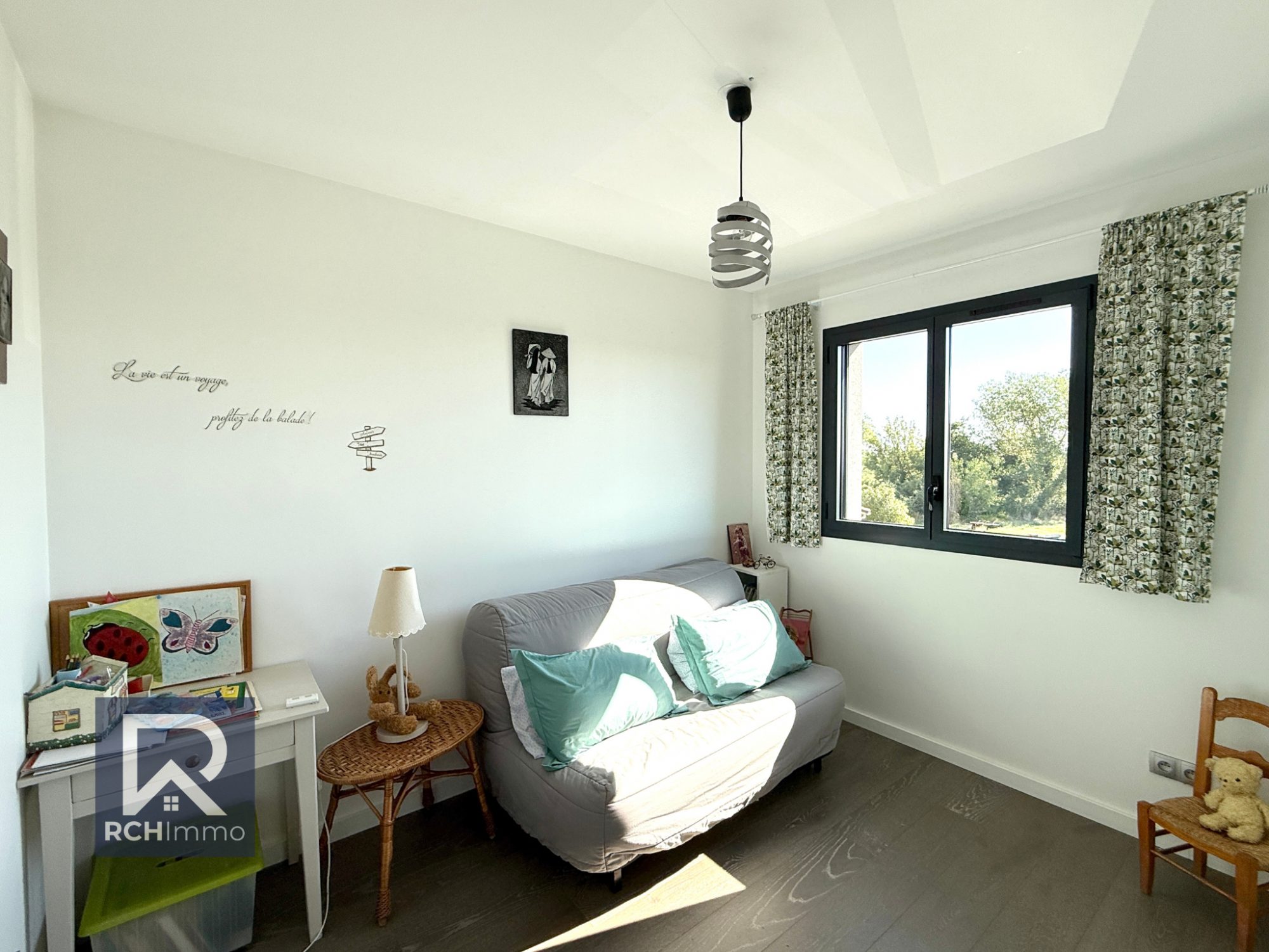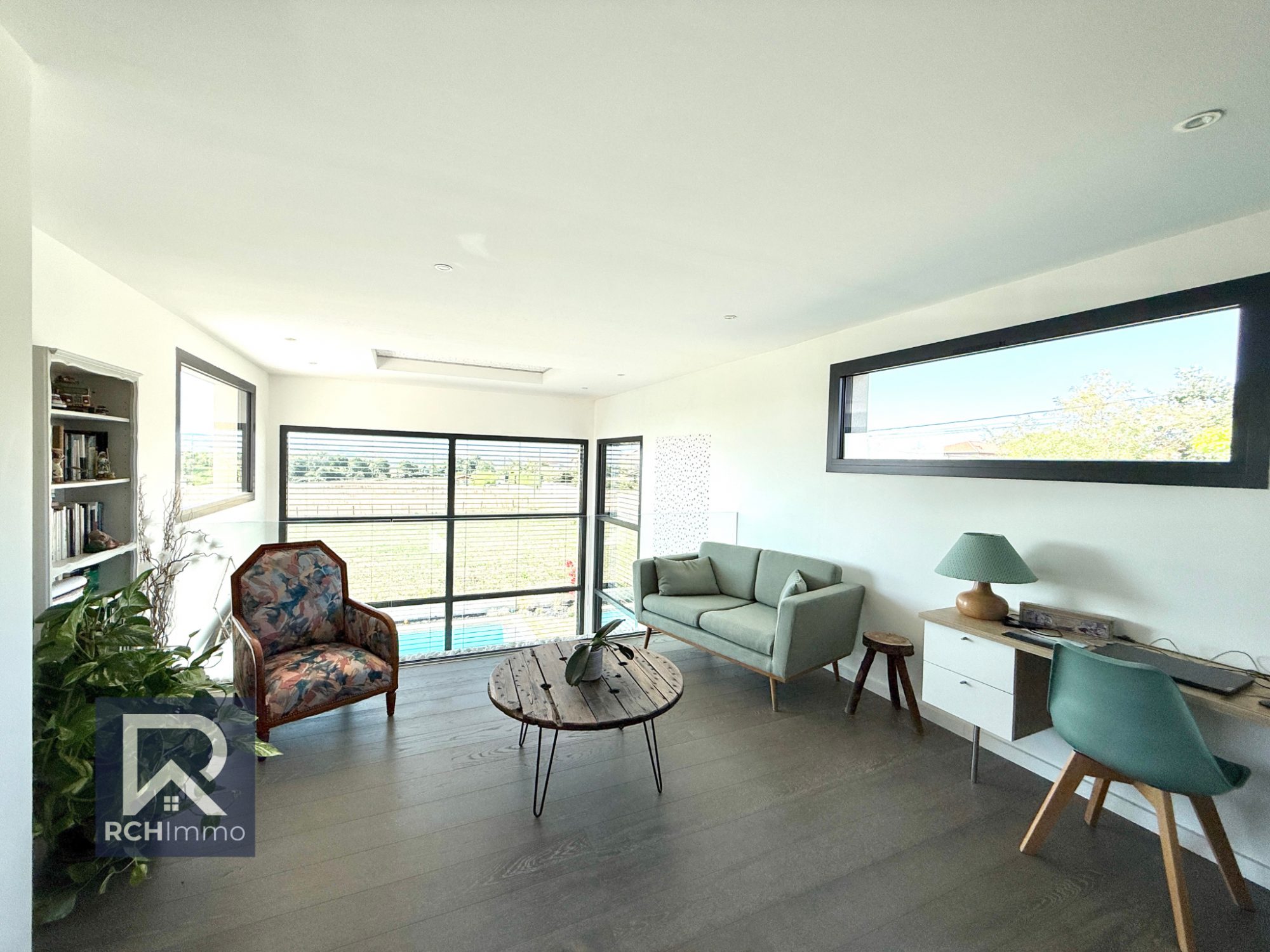 Prestations haut de gamme : - Pergola bioclimatique - 14 panneaux photovoltaïques (2024) - Chauffage au sol par pompe à chaleur (air/eau) - Isolation phonique & thermique de qualité - Plafond cathédrale + baies vitrées double hauteur - Huisseries aluminium + volets roulants électriques centralisés - Classe énergétique : B